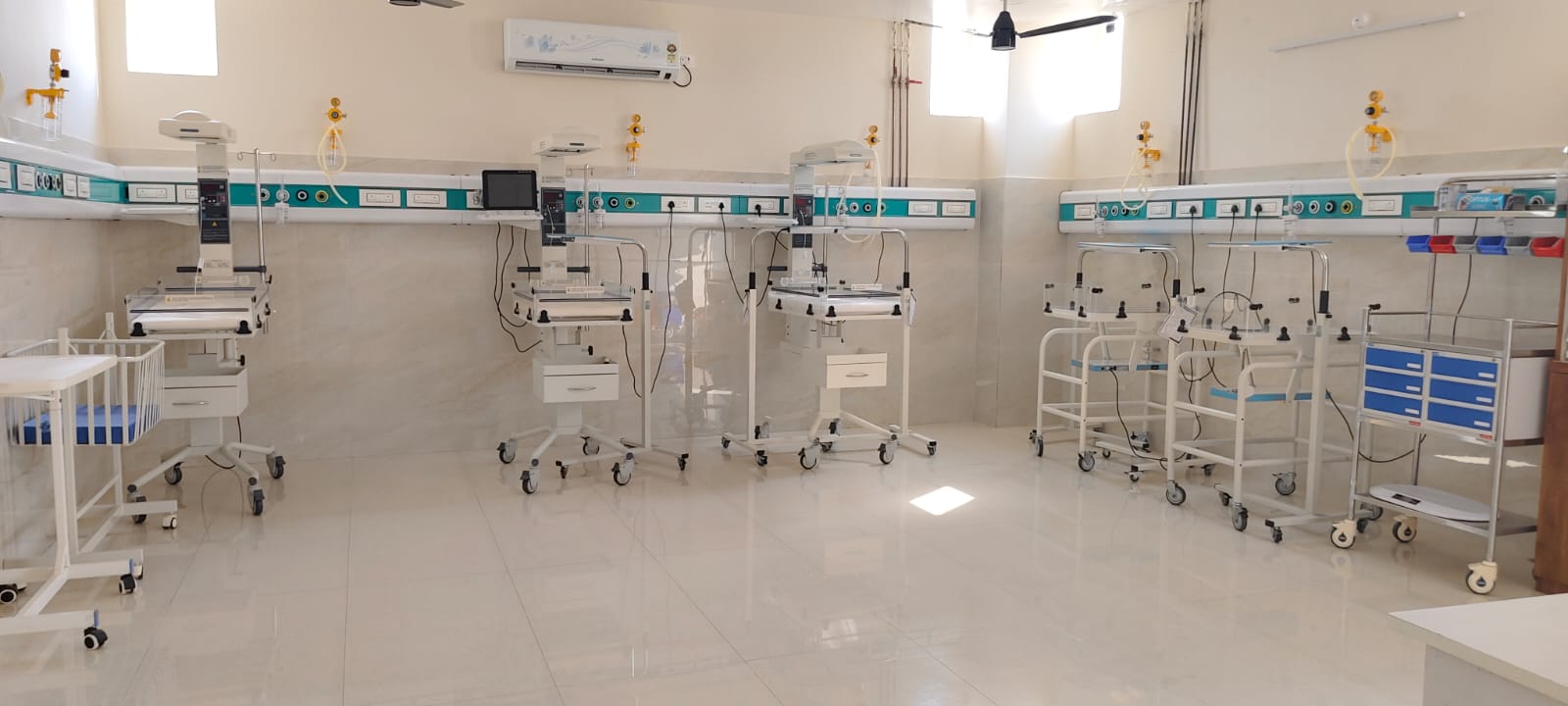 The hospital provides advanced neonatal and pediatric care facilities, including phototherapy treatment for newborns and infants suffering from jaundice. The hospital is equipped with modern warmers, ventilators, C-PAP, HFNC systems, and central oxygen supply for newborns and critically ill children.